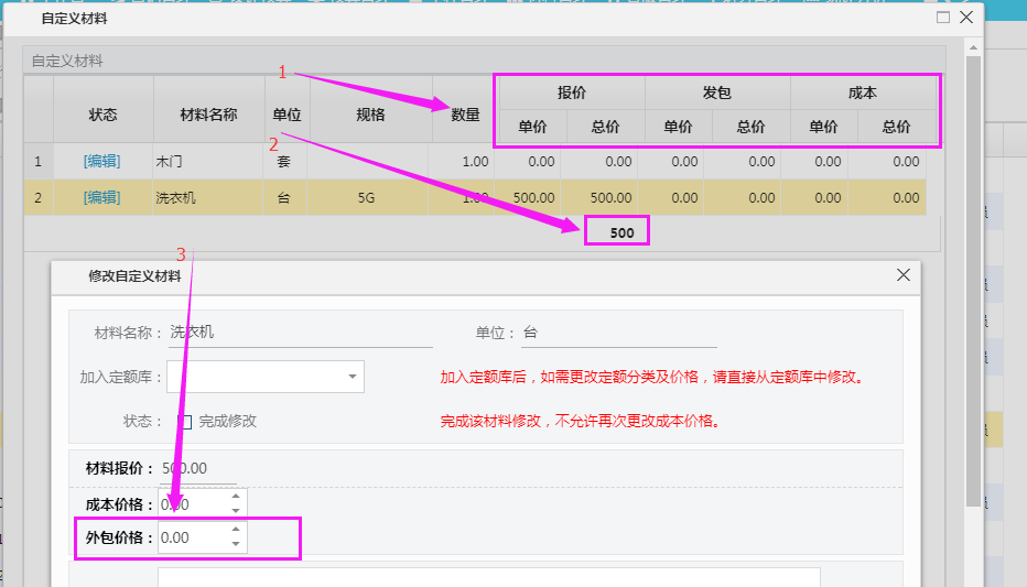 自定義主材在【系統(tǒng)設(shè)置】完善信息時(shí)增加發(fā)包單價(jià),同時(shí)增加發(fā)包預(yù)算中金額