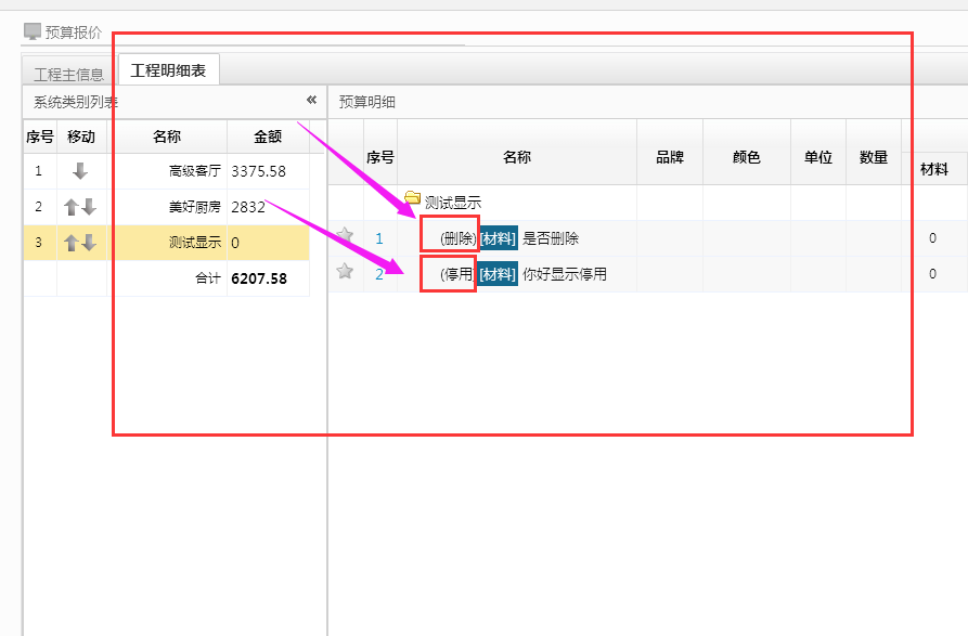 相應(yīng)材料已停用或是已刪除,方便設(shè)計師及時調(diào)整預(yù)算模板