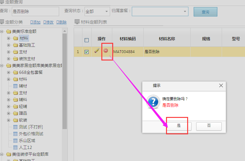 預(yù)算模板標(biāo)注明細中當(dāng)前材料在定額庫中的狀態(tài)(停用、刪除)